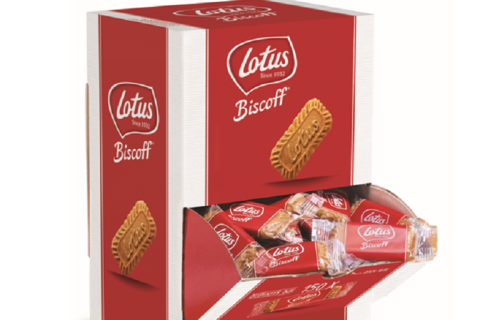 - Il Dispenser contiene 150 biscotti Biscoff confezionati singolarmente.